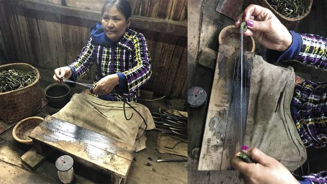 来到茵莱湖,我们也不会错过参观茵莱湖的手工艺品,湖上座落着自制雪茄烟厂、造纸和制伞厂、打铁铺、纺织业、银饰和宝石加工、造船厂等等。这其中最让我印象深刻的是莲藕丝织品,工人把数根藕梗折断抽拉出细细的藕丝后再把丝小心的搓揉成线,最后以传统古老的纺织方式织成布匹,再裁制成服饰或围巾等,质感柔滑舒适。