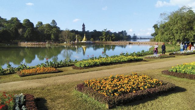 慢慢逛到缅甸三大植物园中最大、历史最悠久的国家公园—眉苗植物园,只见它仍然保留着英国殖民时期盎格鲁萨克森风格,内有多种类热带和亚热带植物。明镜一般的湖泊,有黑、白天鹅优雅的在湖中悠游。累了,在绿荫棚下坐坐享用一杯饮料,吃甜点,很舒服,很享受这一刻。