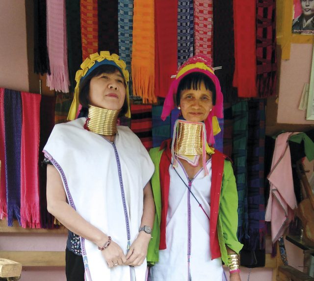 在前往茵莱湖的途中,顺道走了一趟Pan Pet村庄。这个有着非常原始和特色鲜明的部落,住着独特的克扬长颈族(Kayah Ethnic)。长颈族可说是泰国和缅甸边境的一个奇异少数民族,这里的妇女以脖子长为美的标准,颈上戴着的铜项圈是随着年龄的不断增长而增加铜圈的数量,最终肩骨在重压下变形,把脖子给“拉长”了。感觉这里的男村民可能都外出打工了,只剩一些妇女儿童,她们大部分以售卖手工纺织围巾、小商品或和旅客拍照以获取生活费。