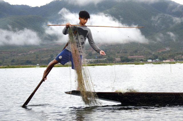 选了水上别墅酒店,每个房间都有露台,望向四周,彷佛置身在大江之中,斜阳中只见对面的浮岛边有渔夫用一只脚站立船头,另一只脚则不疾不徐划桨控船,一手撒网捕鱼,这悠悠捕鱼的景色太美了,仿佛一幅画。在茵莱湖,慵懒、恬淡悠闲的节奏……我很享受,连脚步也在不知不觉中放慢了。