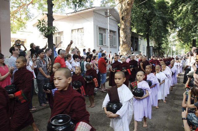 • 缅甸佛教徒仍恪守原始佛教托钵乞食的制度,信徒供养什么就吃什么,不计较荤素。