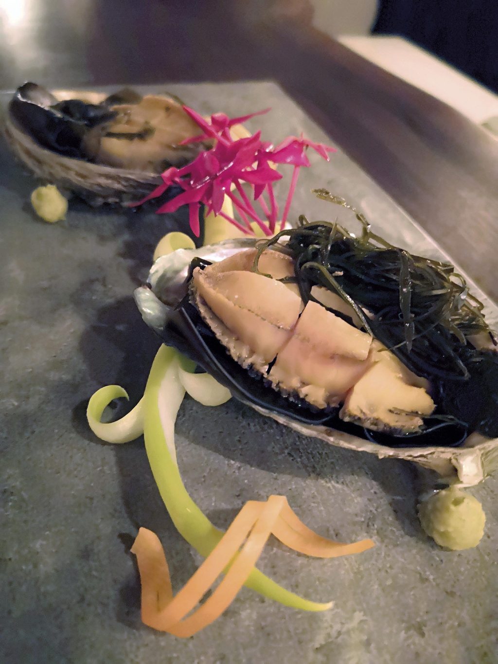 招牌酒蒸鲍鱼(1个$28/2个$50),是以新鲜济州岛鲍鱼用日本清酒配搭海带蒸4个小时,食用时蘸点自制日式柚子酱(ponzu),入口软糯弹牙的同时别有一番清酒香。至于韩式鲍鱼粥($38),也是以整个新鲜济州岛鲍鱼搅碎后与粥同煮至软糯,清淡带鲜。