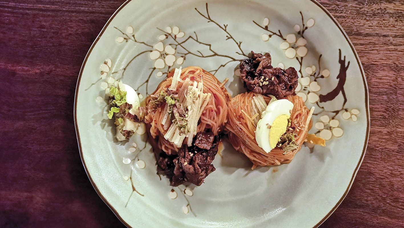 七彩拌菜(Imperial Longevity Salad, $28/$40),是以牛肉丝配塔不同颜色的菜瓜丝如黄瓜、红萝卜、灯笼椒等等,不仅色彩鲜艳,食材还很丰富,是很多人都喜欢的凉拌菜,是值得品尝的一道韩式“捞起”。