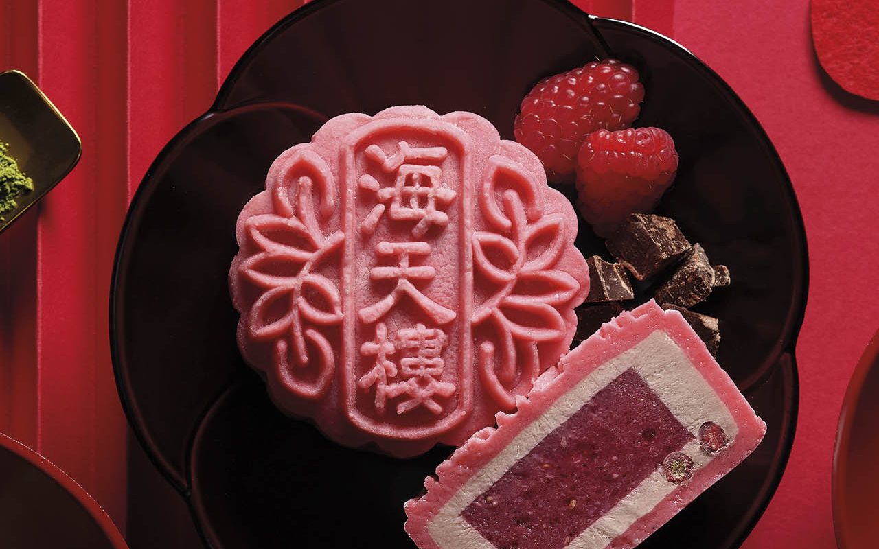 9 把馅料放进挤花袋里,挤入月饼模具至一半,加入2颗鲜覆盘子后再挤入馅料盖着。每个月饼需80克的馅料。