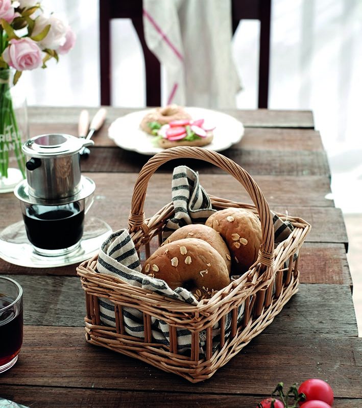 5    将面团擀成椭圆形,再滚成长条状,其中一端用擀面棍压平。用压平端包住尾部,头尾两端紧密连接,以免烤焙时裂开。各别放在油纸(12X12公分)上,发酵约30分钟。