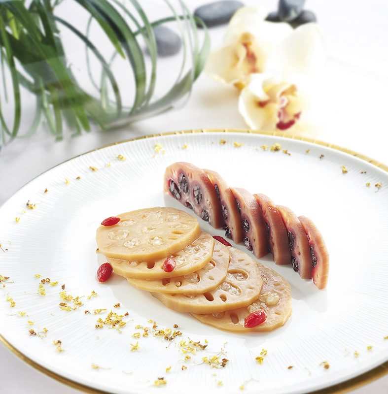 4 取出莲藕切片,淋上桂花糖汁即可。
