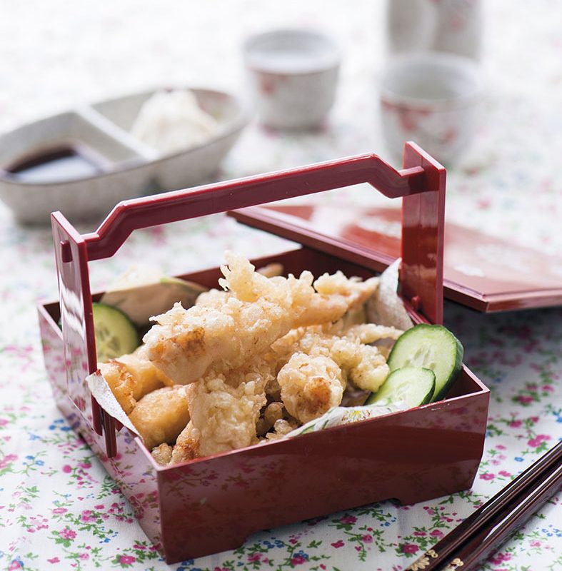 5    将虾裹上黄大豆粉混合物,挂上面糊,放入热油锅中炸至酥脆。捞出后,放置在厨房纸巾上吸去多余的油分。