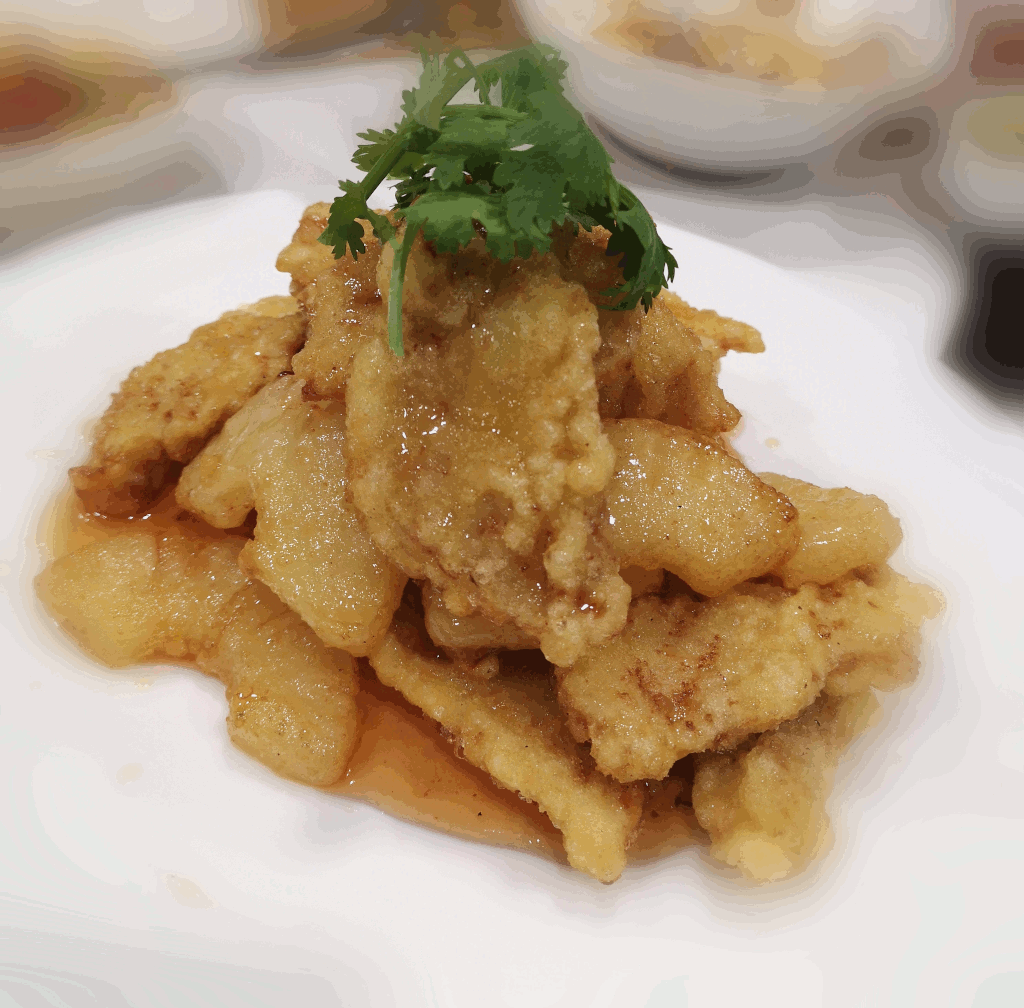 由东北菜和南洋凤梨组合的哈尔滨凤梨锅包肉($19.80),那酥脆内嫩的肉片和外面的酸甜酱汁完美融合,老少皆爱。此外,酸甜开胃的糖醋松鼠鱼、香浓与嫩滑相结合的红烧肉配溏心蛋、麻辣爽口的蜀味鲜椒口水鸡、蒜香浓郁的金汤蒜蓉小龙虾以及外酥里糯的酥炸南瓜饼糍粑双拼等也是不容错过的。