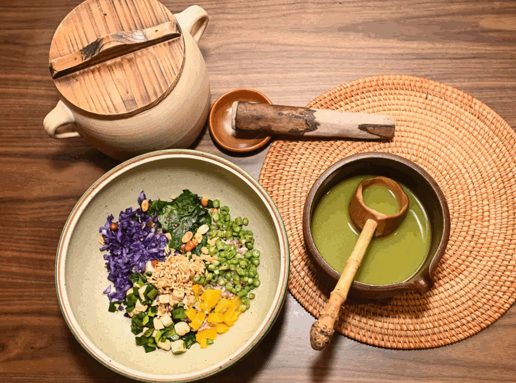 新版七彩25谷米擂茶饭。
