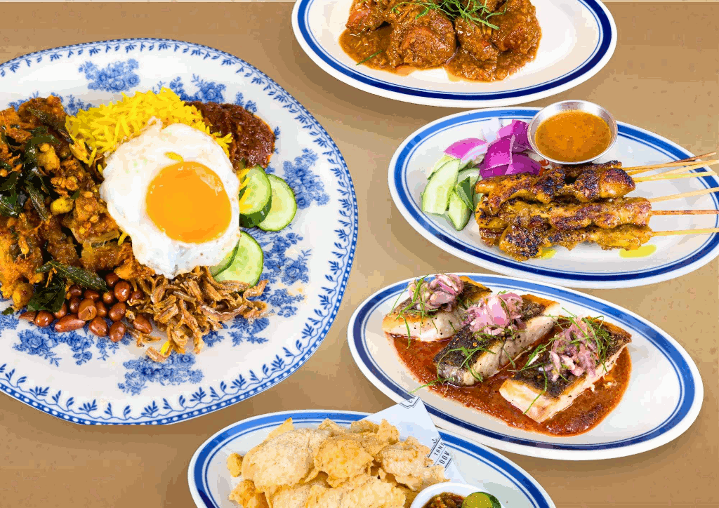 带着黄姜和椰奶香的椰香黄姜饭(Turmeric Coconut Rice),非常适合辣、咸、酸以及香料味重的主/配菜,这包括了香料炸鸡(Ayam Goreng Berempah)、慢炖牛肉仁当(Braised Beef Rendang)、叁峇澳洲肺鱼配咸虾酱(Sambal Barramundi with Cincalok)、娘惹亚叁虾(Nonya Assam Prawn)、印度奶油鸡(Indian Butter Chicken),以及各式配菜如蘸叁峇酱食用的炸虾片、藜麦罗惹沙拉、沙爹鸡肉配花生酱等,不但让每一口都充满了变化,更进一步丰富了味觉体验,让人回味无穷。外加餐后甜点:芋泥、传统椰糖西米露布丁或煎蕊椰香冰淇淋,绝对是物超所值。